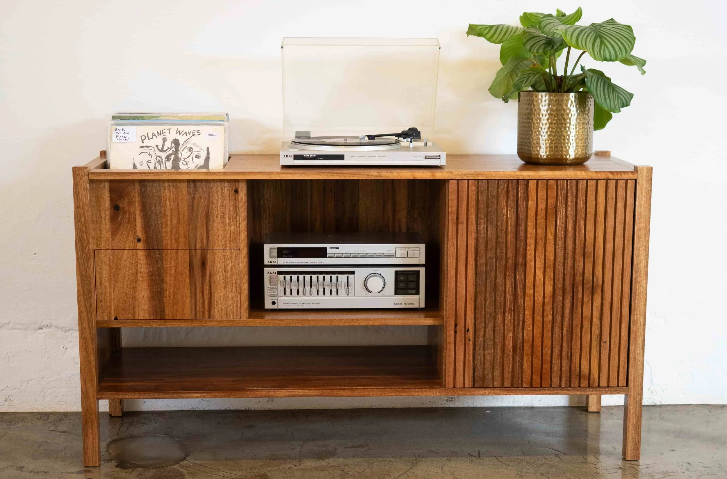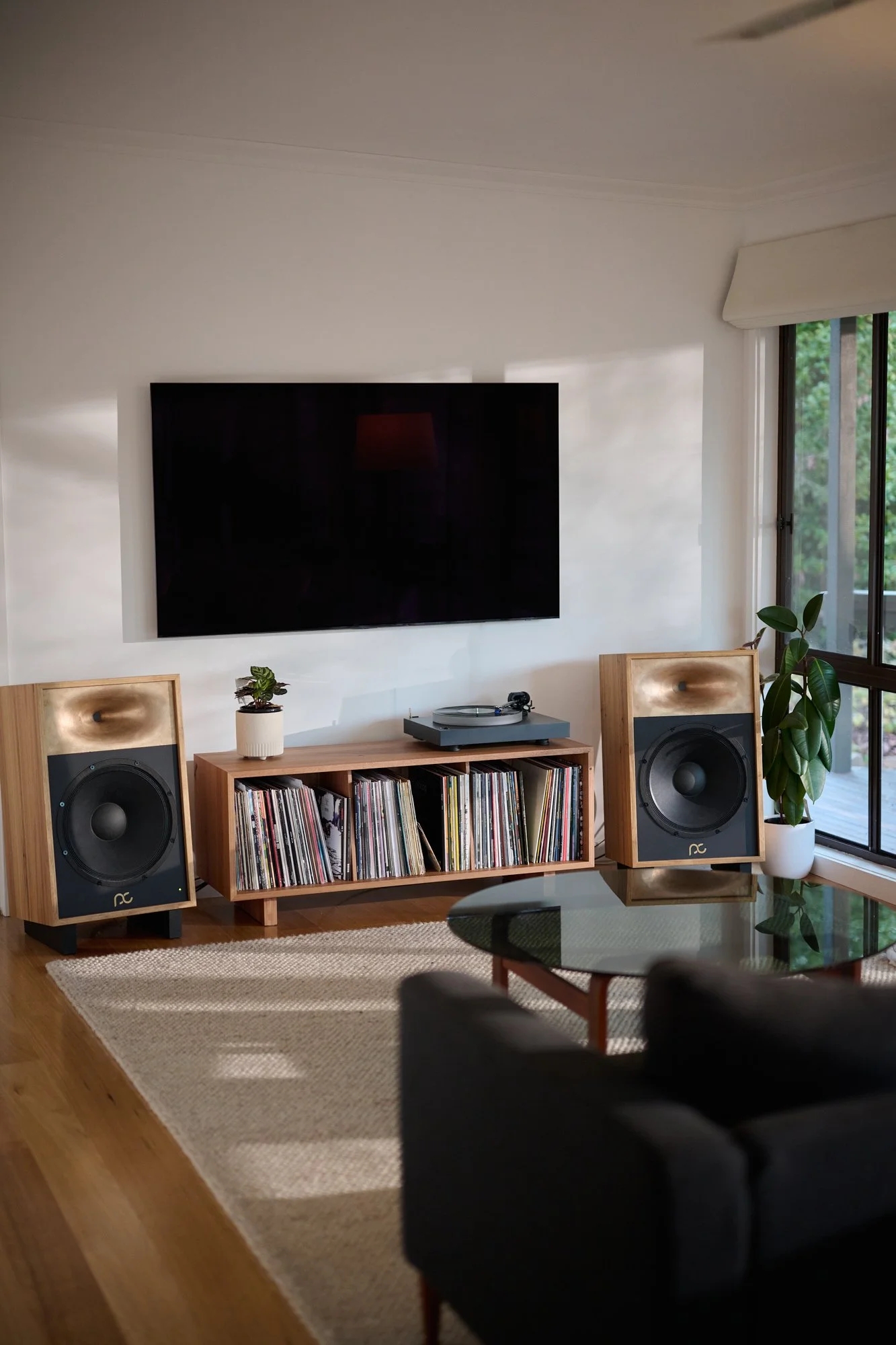 Select from striking Australian hardwoods, such as recycled Spotted Gum or Blackbutt, each piece with its unique character, strength and grain. Or, if you prefer a different look or finish, we have a range of other recycled timber species and finishes you can use to create your perfect record cabinet. Every cabinet is built by hand in our workshop, with meticulous attention to joinery, tactile surfaces, and details that both protect and celebrate your collection.