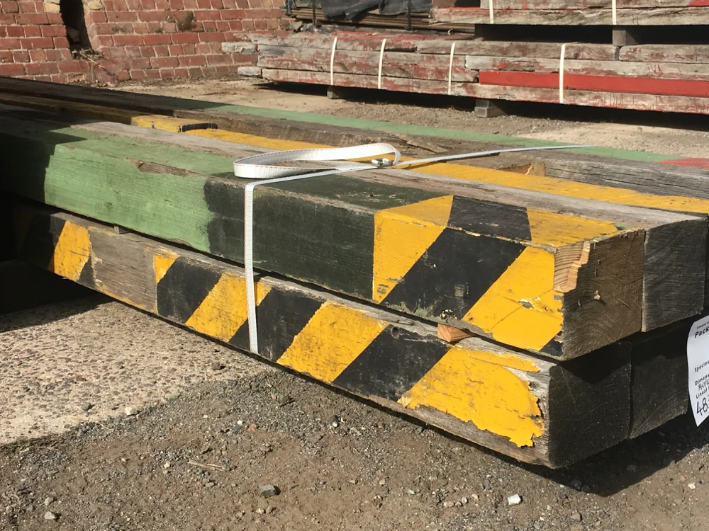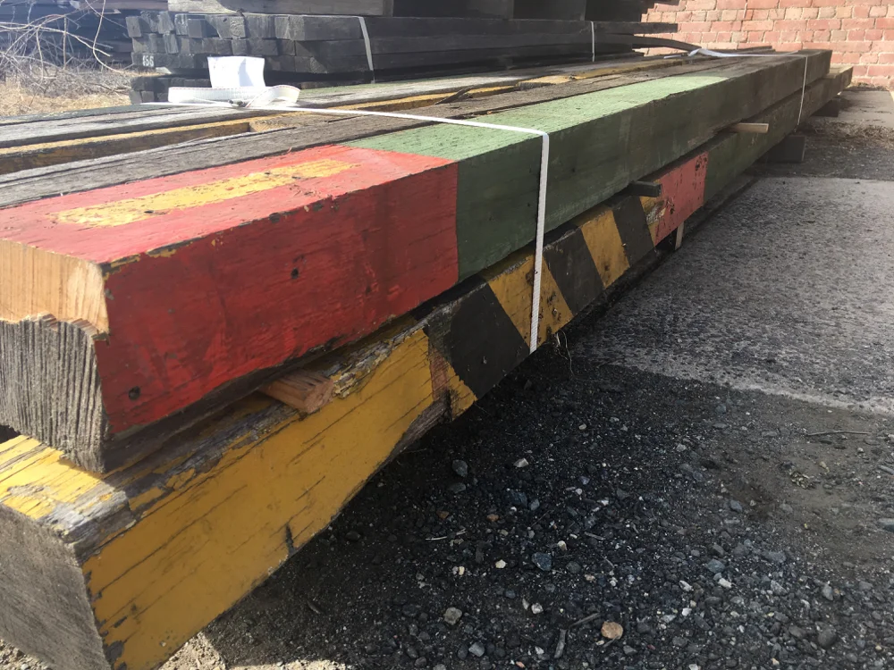 125 x 100mm and 150 x 125mm Ash posts with coloured painted stripes, salvaged from the Laverton Army Barracks, Melbourne.