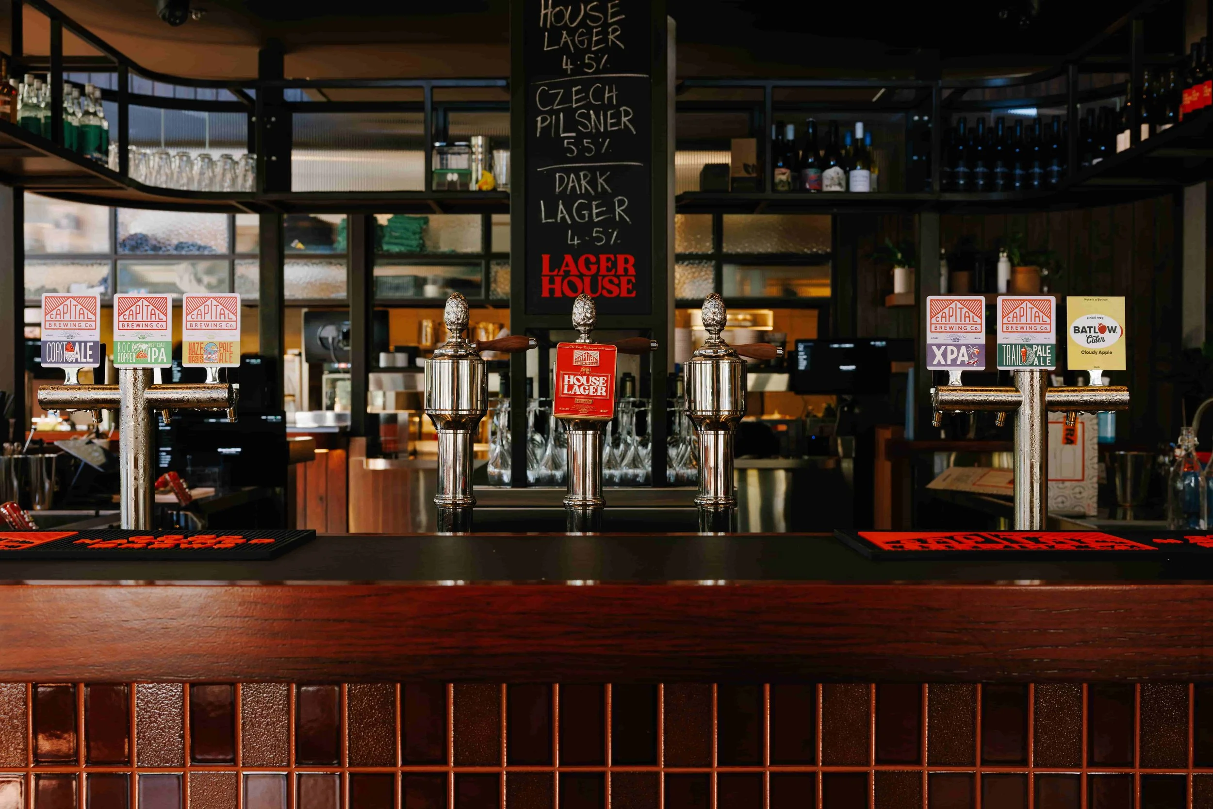 The bar front at Lager House.