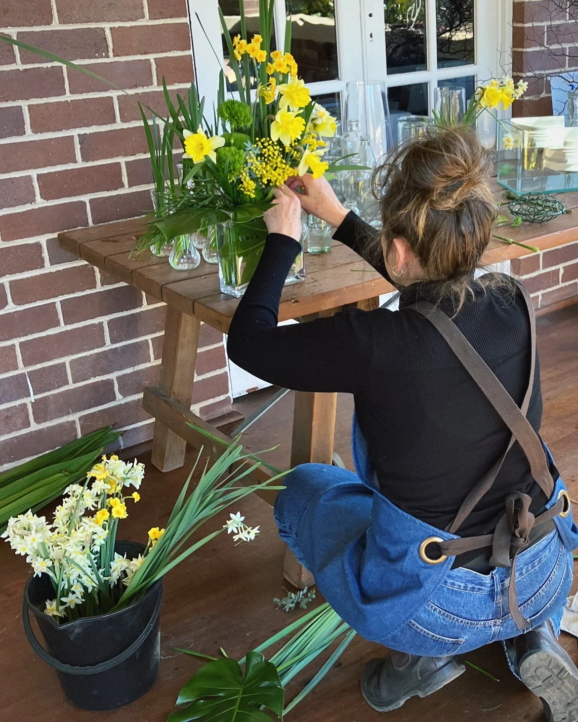 The rectangular box shape can also be a challenge to work with as materials naturally want to fall away from the centre toward the corners. This is where strategic stem placement comes into play, creating support and structure. Unless of course it’s an en masse bunch of billy buttons or paper daisies, which look absolutely stunning in the vases.