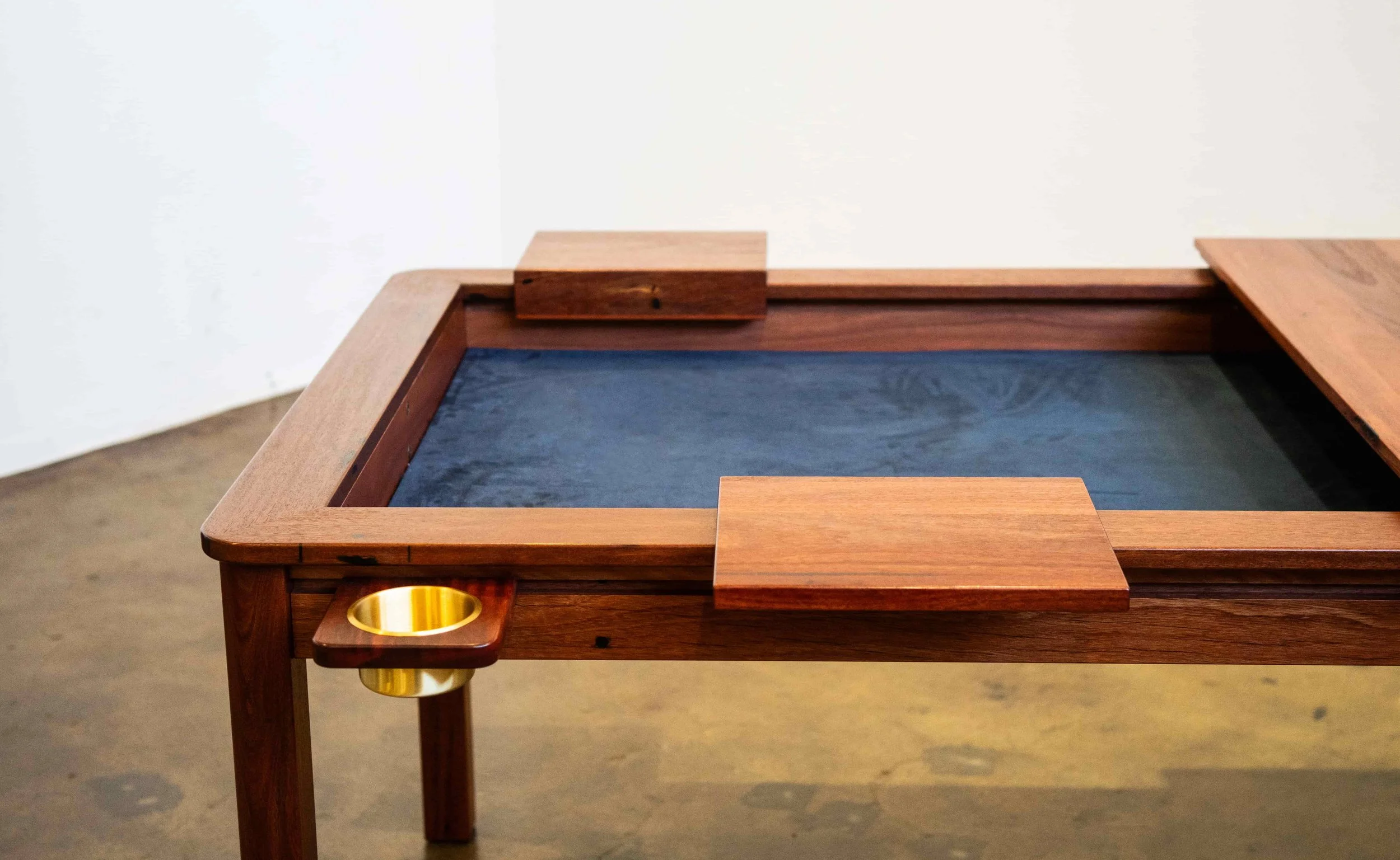 The recessed gaming area can be lined in felt to create a soft playing surface, ideal for dice rolling and card play. Choose from a range of colours to suit your aesthetic or favourite game theme.